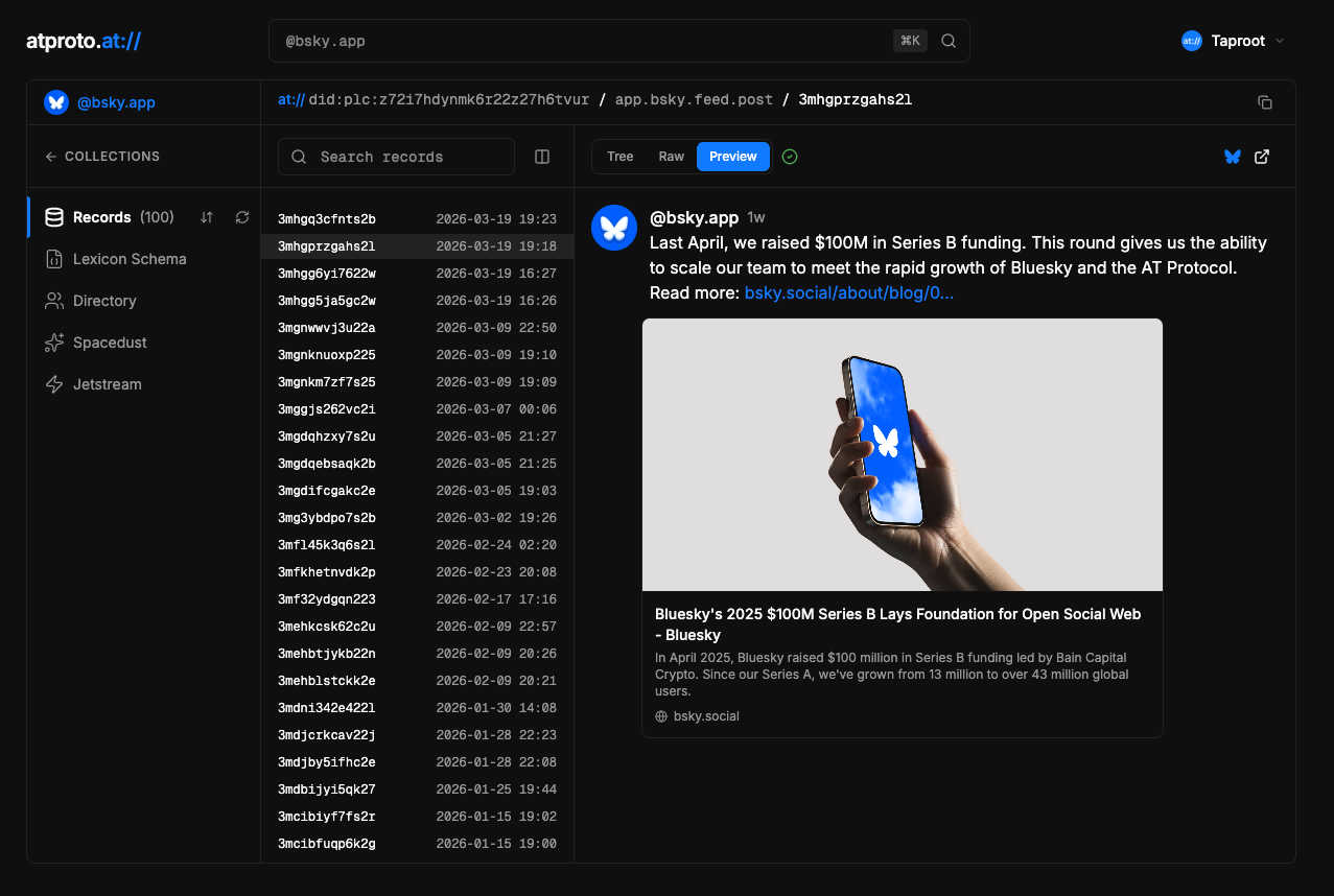 Taproot - AT Protocol Explorer gets an upgrade - atproto.at