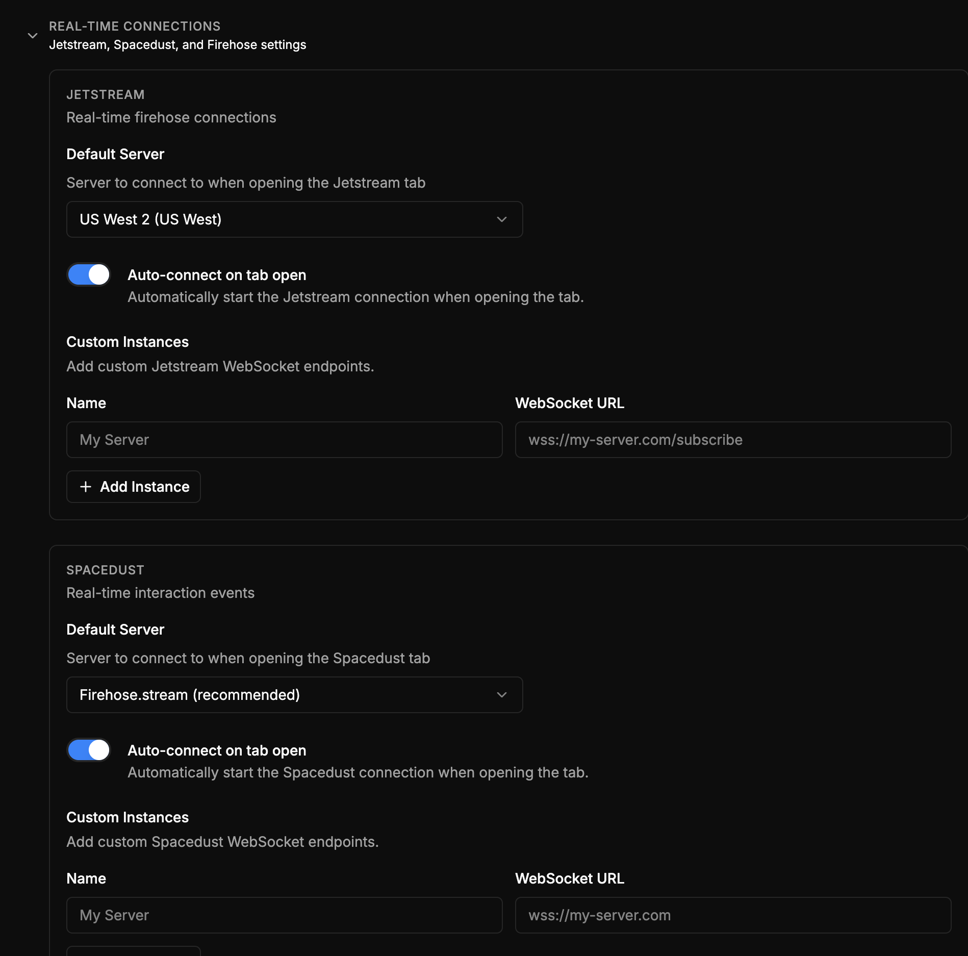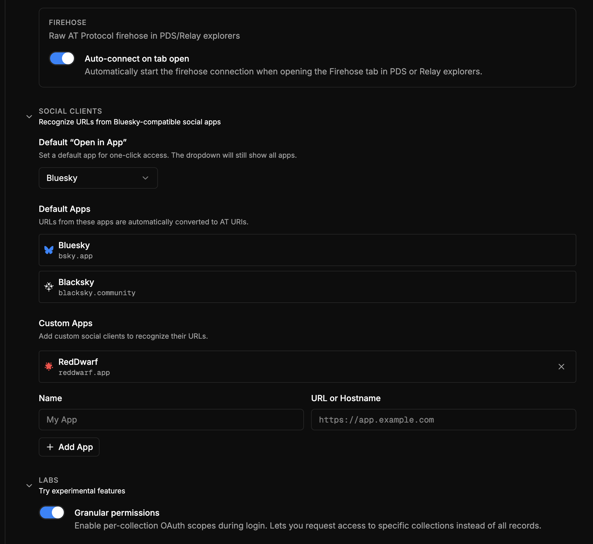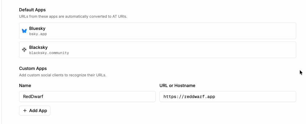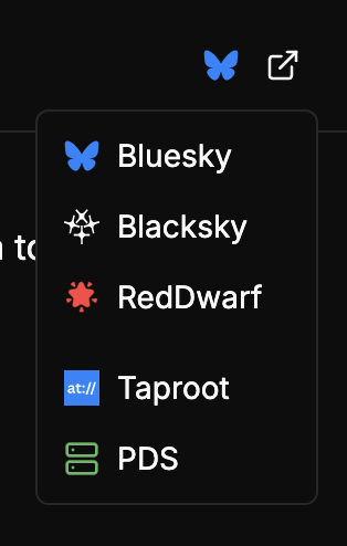 supports bluesky , blacksky or any custom client links