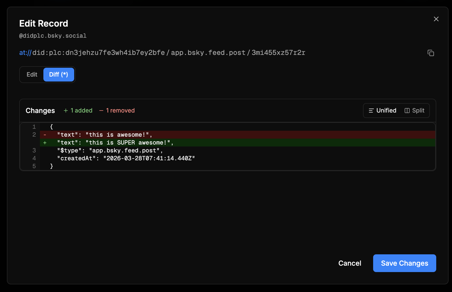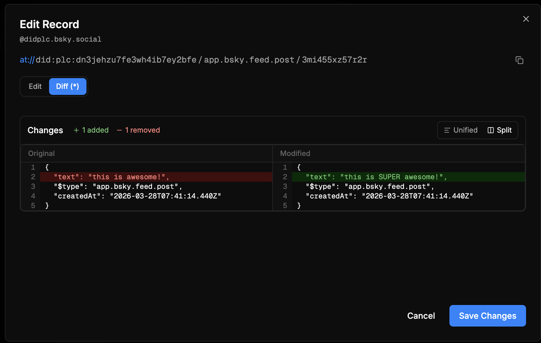 See what you changed before saving
