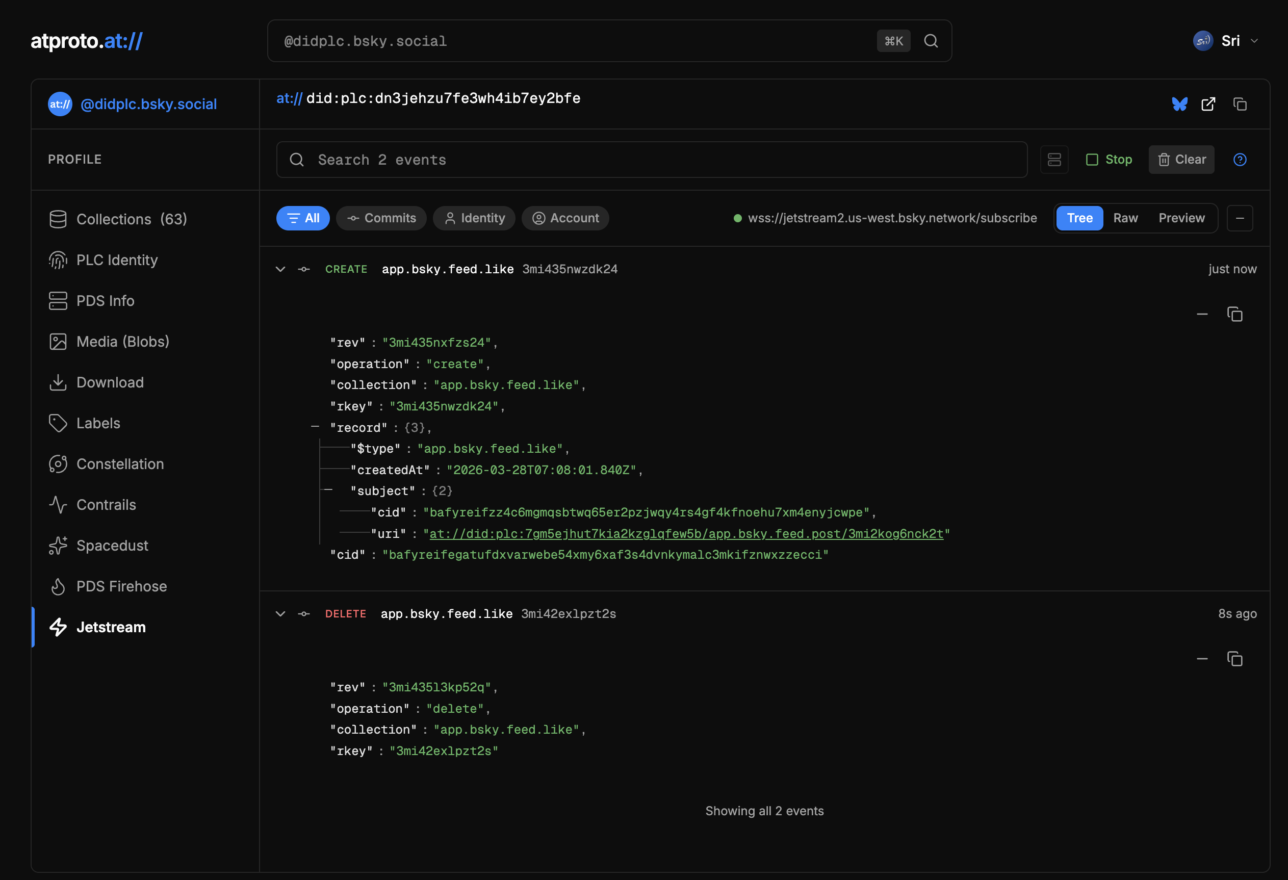 listen to events (CBOR) directly from the PDS for this profile