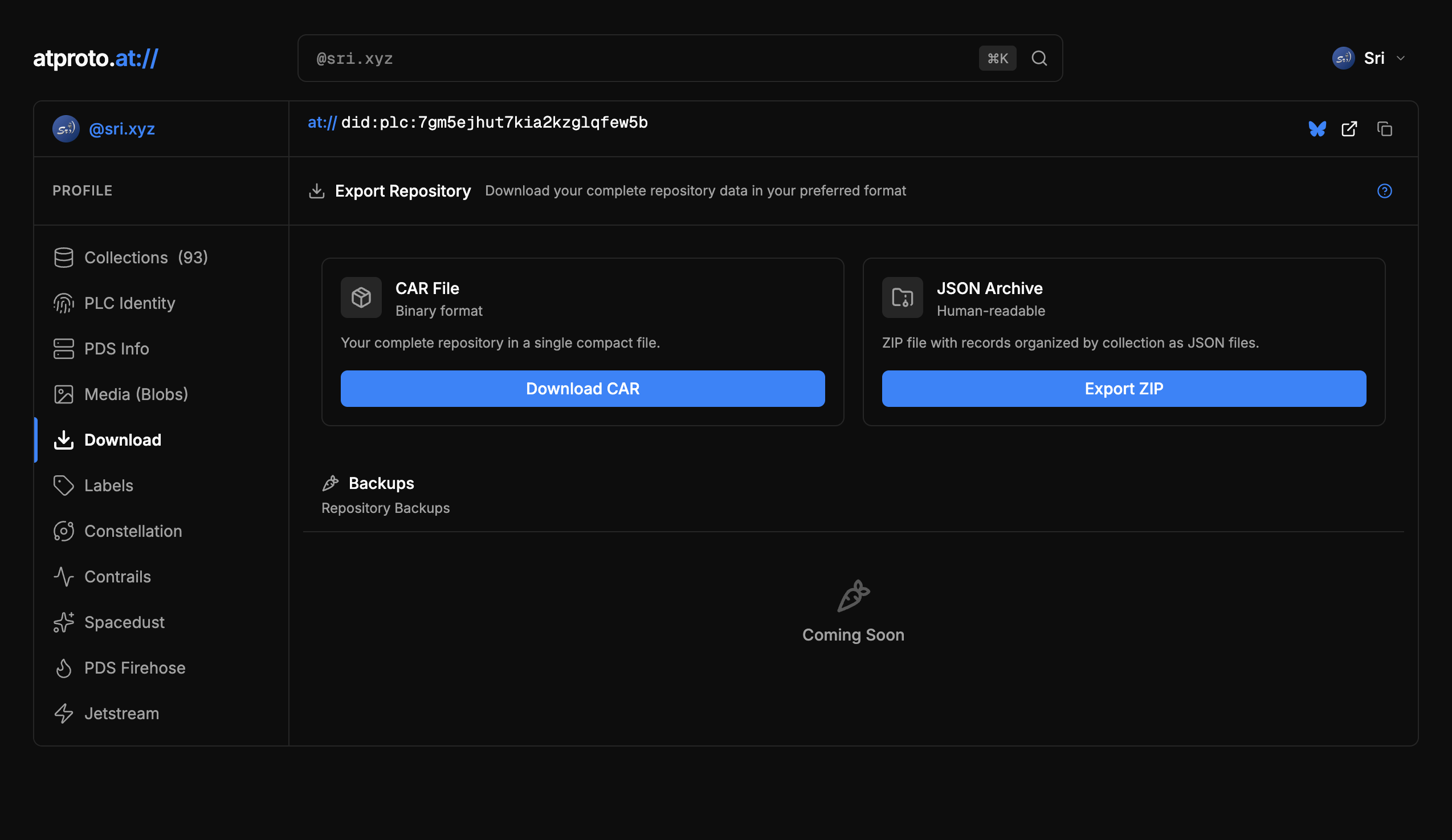 Download repo as CAR file or JSON archive