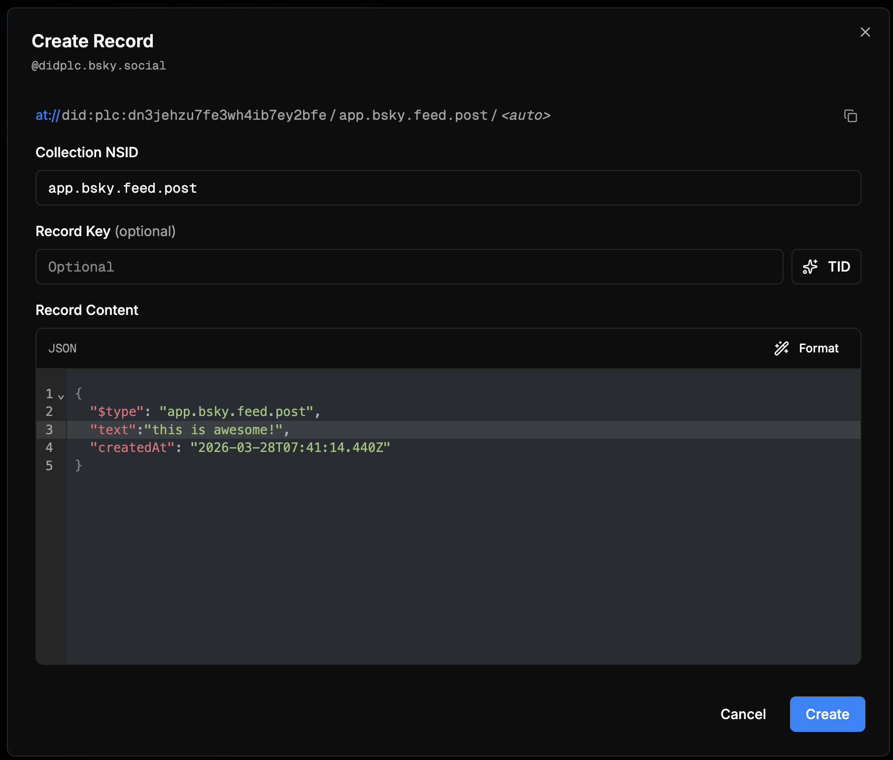 with lexicon schema definition for that NSID